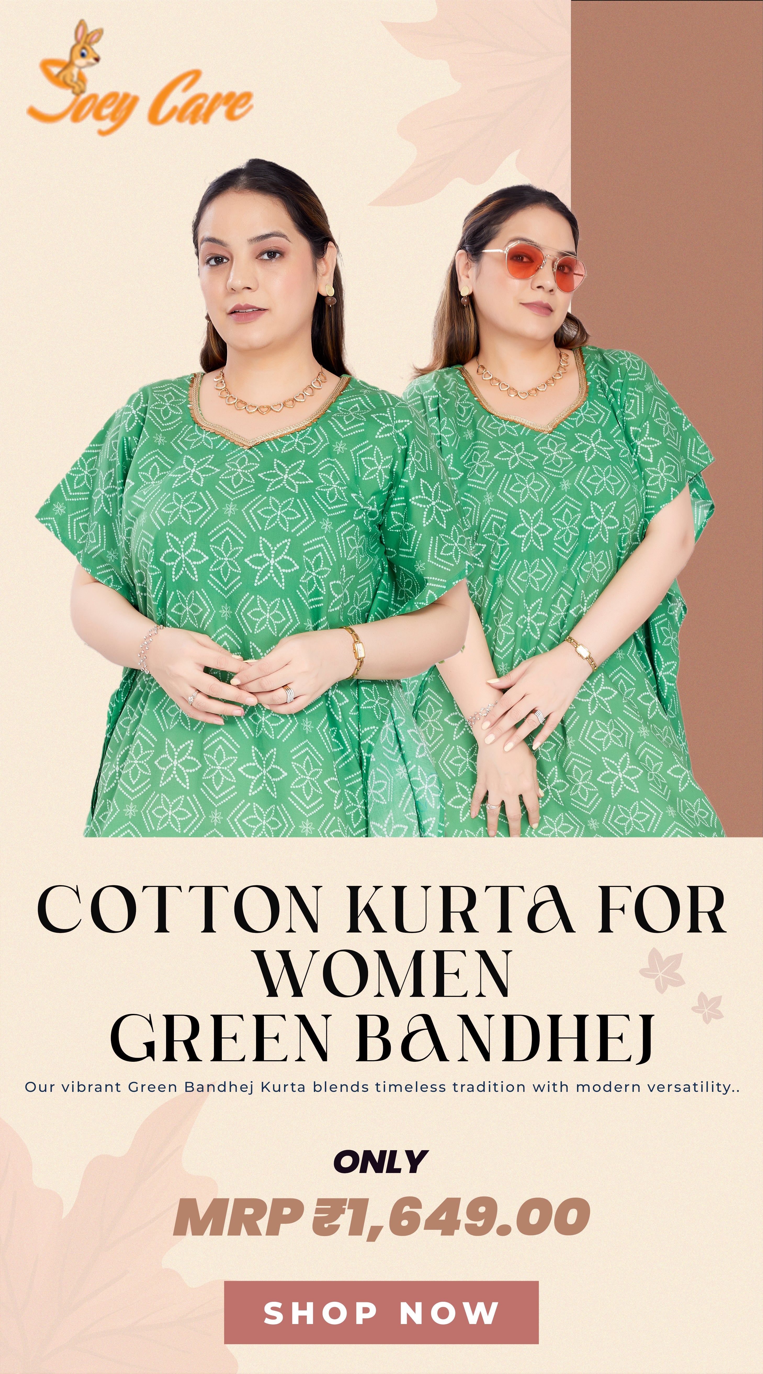Cotton Kurta for Women - Green Bandhej